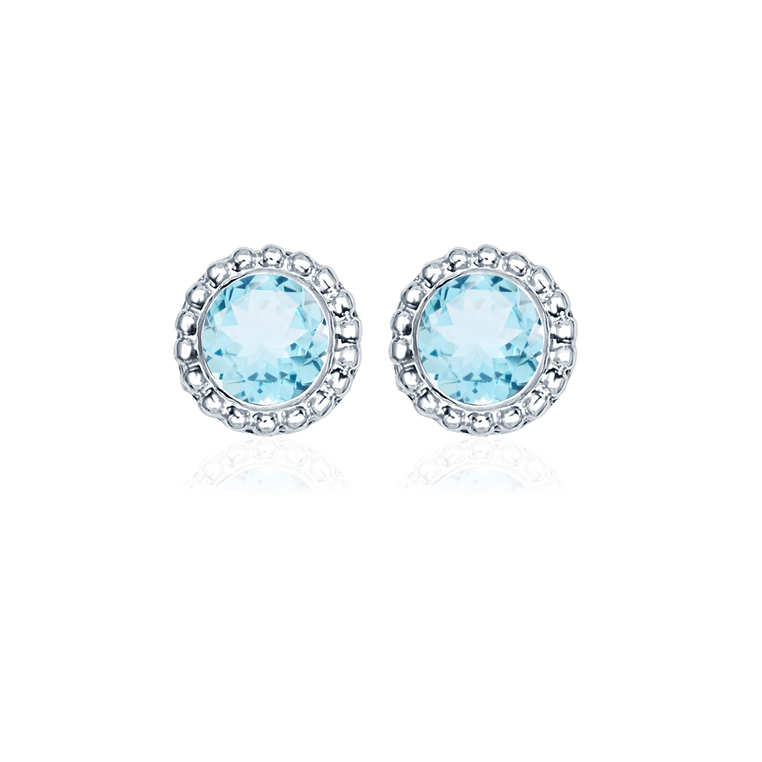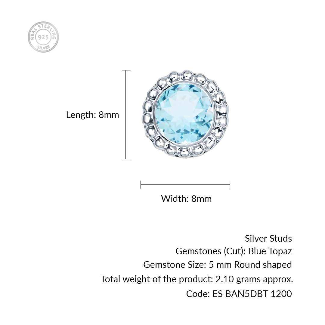 Silver Studs(design) with 5mm Round Blue Topaz Gemstone in Band Setting
