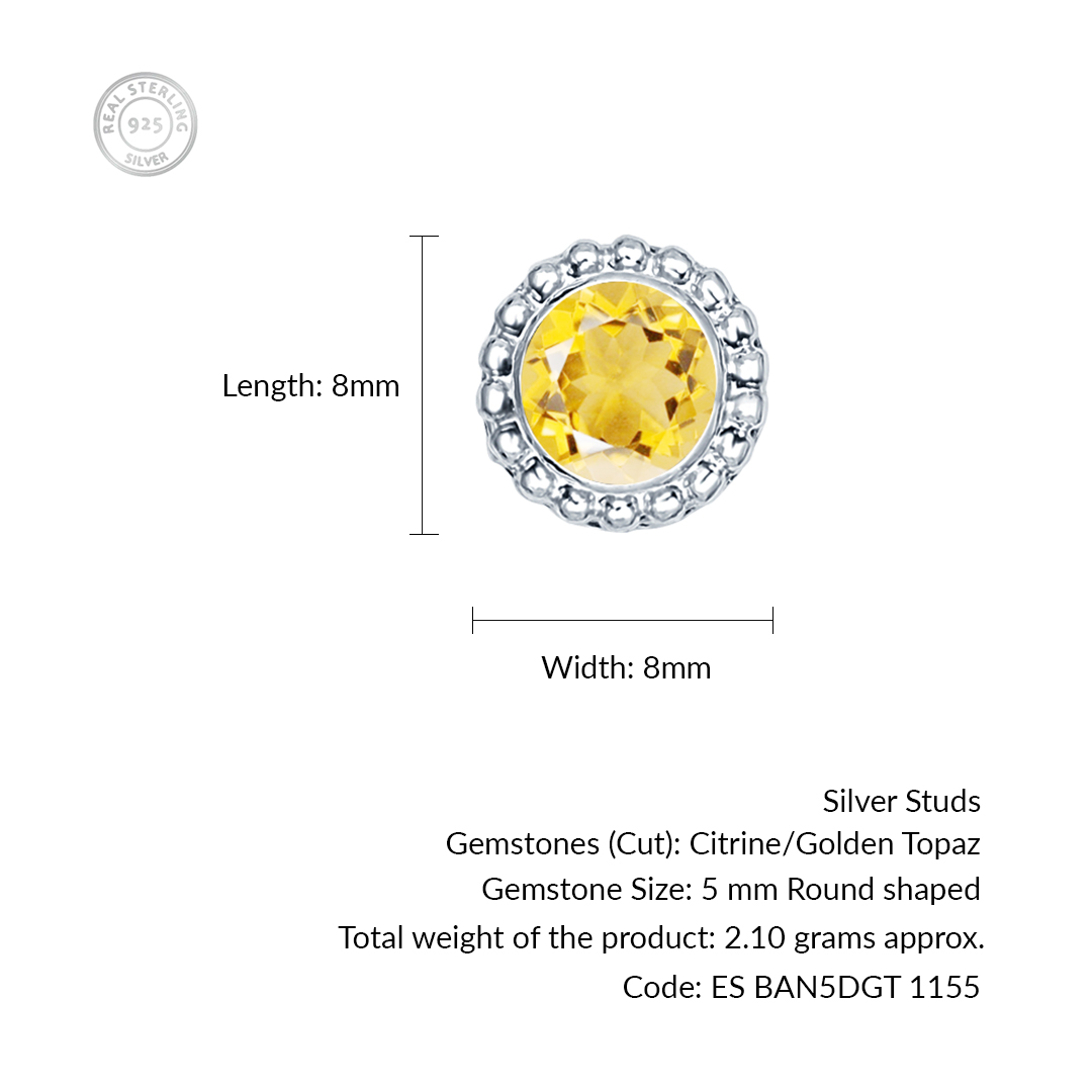 Silver Studs(design) with 5mm Round Golden Topaz/Citrine Gemstone in Band Setting