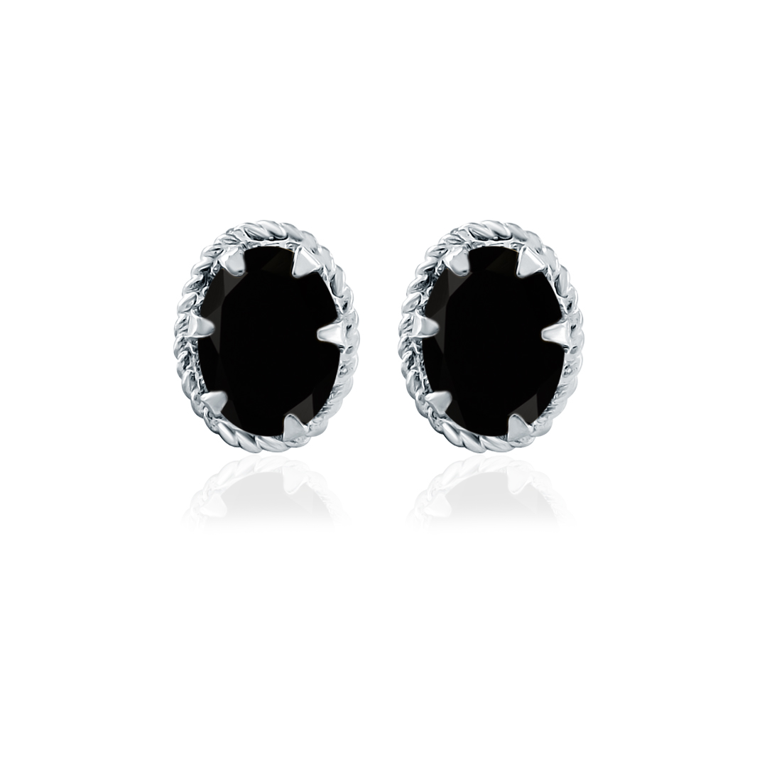 Tar Silver Studs with 5x7mm Oval Black Onyx Gemstone