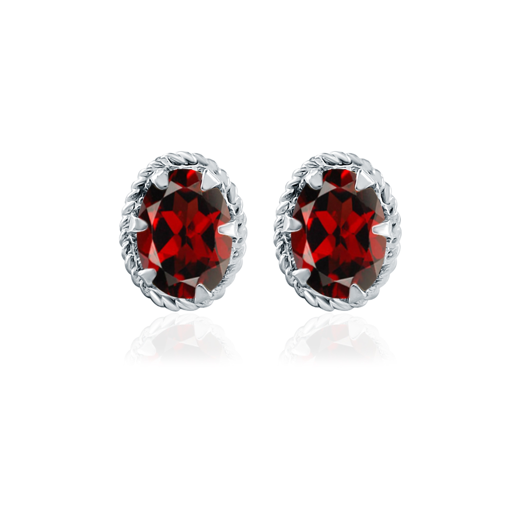 Tar Silver Studs with 5x7mm Oval Garnet Gemstone