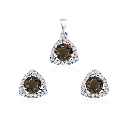 - Gemstone Details: 6 mm round Smoky Quartz cut (1pc) & round shaped Cubic Zirconia (28pcs)