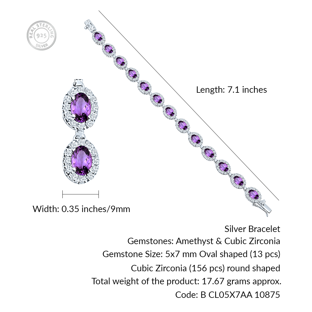 - Gemstone Details: 5×7 mm oval shaped Amethyst Cut Gemstone (Purple Color) in prong setting along with round Cubic Zirconia (156 pcs)
